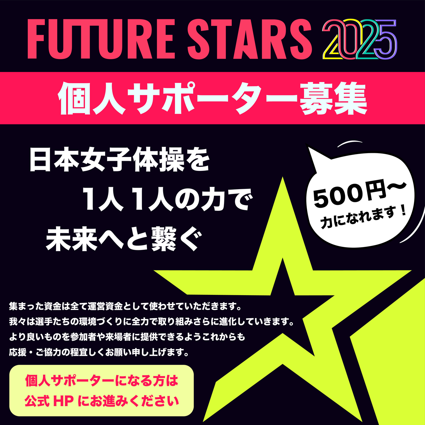 「会場費用・演出費用・大会運営スタッフ確保・備品及び機材購入・学習コーナー提供の充実等」継続的にグレードアップしていく為の資金として使用されます。全ては日本女子体操発展、選手及び関係者・来場者が楽しめる環境づくり・空間の提供を目的としています。個人サポーターにより集まった資金は全て還元のために使用されます。